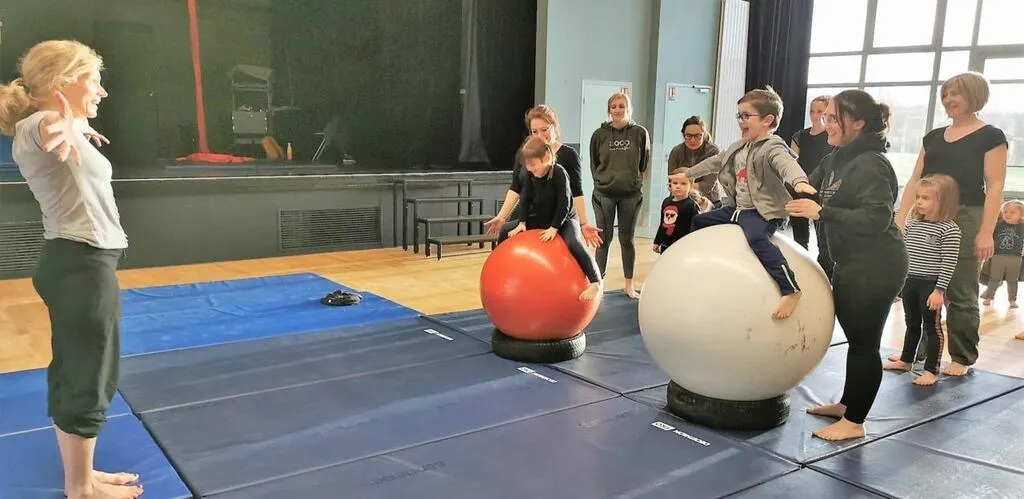 Le stage de cirque proposé par le Val’Rhonne a comblé les familles. Huit mamans et un papa ont pris plaisir à tester les différentes activités sous la houlette de Régine Ledru, intervenante. La séance a démarré par un échauffement ludique (petits exercices mimant l’ascenseur, la pluie qui tombe, une étoile de mer…)