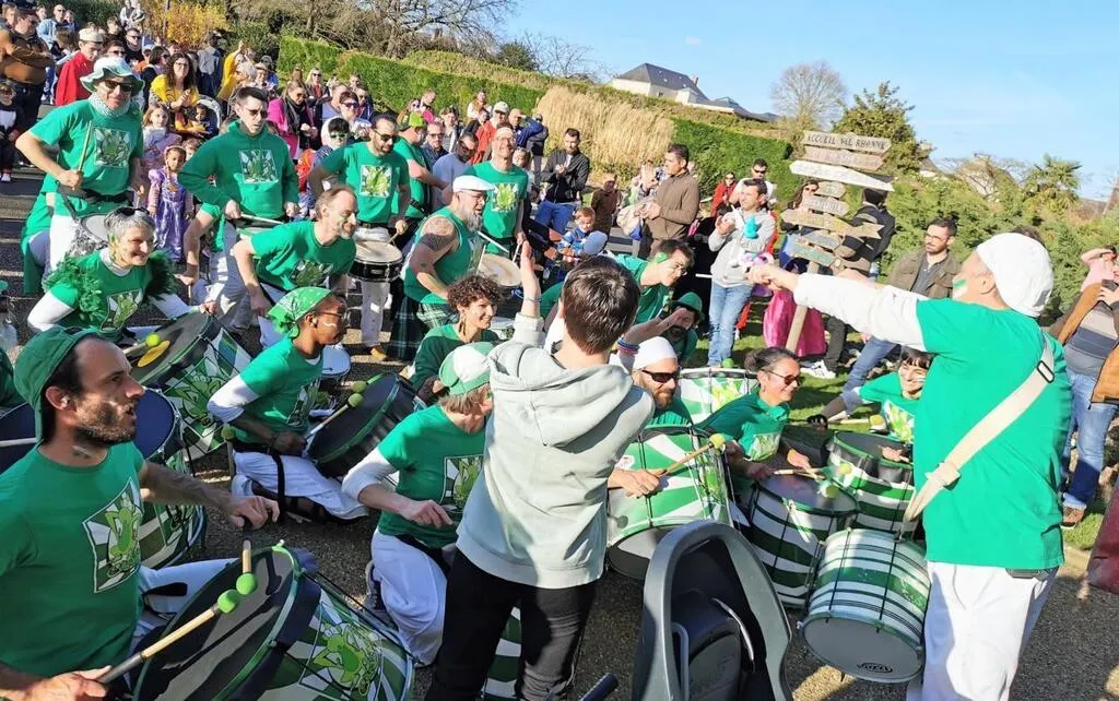 La batucada Braz’Auréoles à son retour au Val’Rhonne après le défilé dans les rues. © Le Maine Libre.
