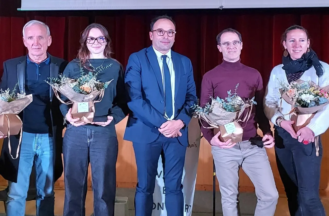 Jacky Delahaye, Ella Chicault, Audrey Provost et Bruno Bois ont été mis à l’honneur lors de la cérémonie des vÅ“ux. © Le Maine Libre