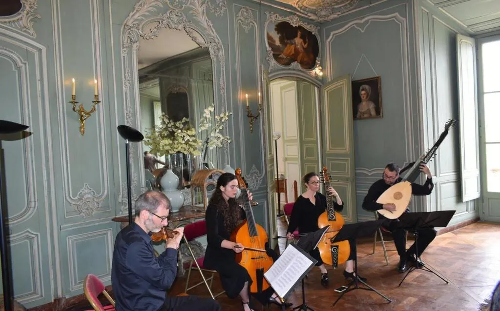 Le salon Conti du château de Montmirail affichait complet pour le concert baroque du groupe « The passion of Musicke » composé par Sacha Levy et Mathilde Henin (viole de gambe), Guillaume Hénin (violon) et James Holland (théorbe).  Beaucoup de grands-parents ont emmené leurs petits-enfantsÂ