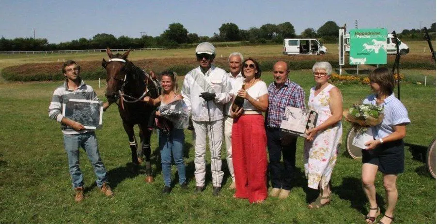 Les quelques 2 000 spectateurs sont aussi venus chercher un peu de fraîcheur sous les espaces ombragés de l’hippodrome du Perche Sarthois, dimanche. Au Prix Altaïr, le Grand Prix de Montmirail, neufs partants prenaient le départ d’une course attelée de 3,200 mètres et dotée 22 000 €. Mais peu de parieurs avaient prévu l’arrivée d’Éclat de l’Iton, drivé par Benoît Robin. Son propriétaire, Nicole Schacher, et son entraîneur, Jean-Pierre Diabat, se délectaient alors d’une belle victoire en Nord-Sarthe.