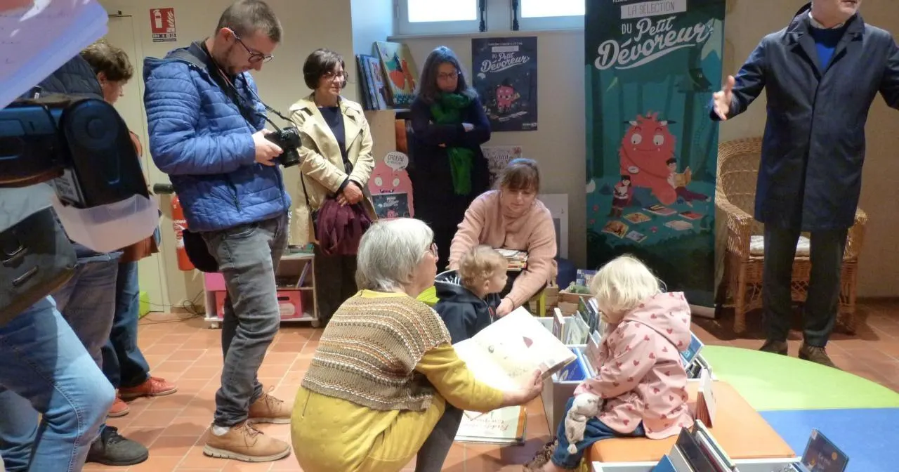 Catherine Lejard, l’une des membres bénévoles de la bibliothèque, se met à la disposition des petits pour des histoires à découvrir. © Ouest-France