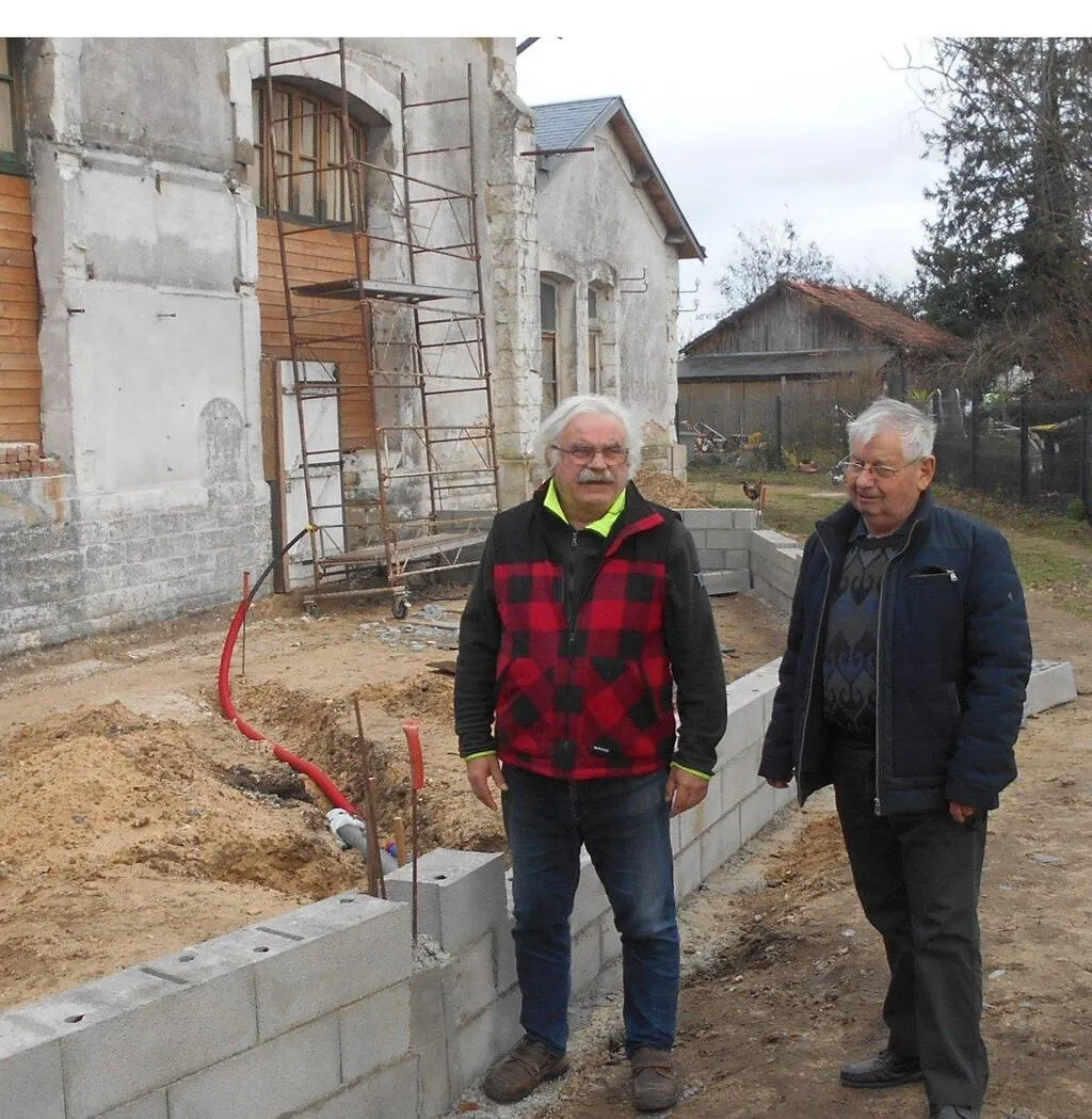 Le président Bruno Duru (à gauche) et Jean-Jacques Courantin, bénévole, devant les futurs sanitaires. © Ouest-France