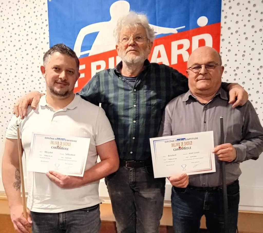 Les épreuves étaient effectuées sous l’œil attentif d’Adam Stadnicki, joueur chevronné, directeur de jeux. Sébastien Mirjolet et Jean Louis Boutard; tous les deux affiliés à la fédération française de billard, ont montré leur technicité. Ils ont été reçus au billard de bronze. La prochaine étape pour le billard d’argent aura lieu le 15 mars à Arnage.