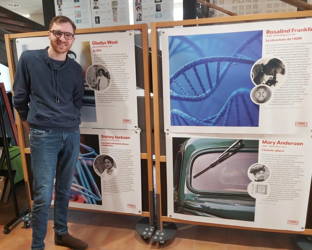 Jean-Hugues Pietin, biblio ludothécaire, pose près de l’exposition. © Le Maine Libre