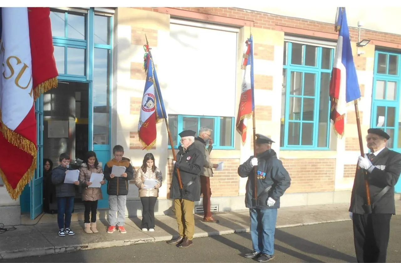 En présence de porte-drapeaux et de membres du Souvenir français, les enfants ont entonné « La Marseillaise » et récité des poèmes de Paul Éluard.