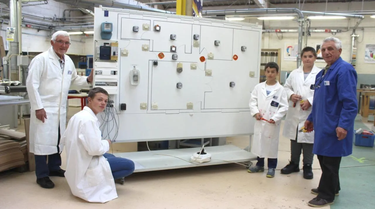 La section électricité avec quelques jeunes et deux bénévoles. © Archives Le Maine Libre