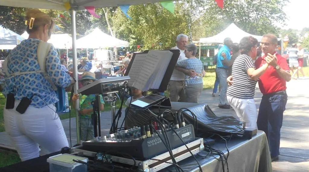 La guinguette était animée par Brigitte et son accordéon. Les classiques du bal musette étaient bien sûr au programme avec des valses, des tangos, des paso-doble, des sloops, et même du twist.