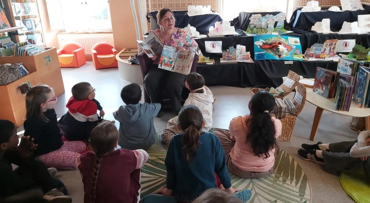 Dans le cadre des temps forts organisés par la bibliothèque ludothèque de Montval-sur-Loir, l’autrice-conceptrice Anne-Marie Baumann est venue présenter ses ouvrages documentaires animés à cinq classes des écoles de la commune.