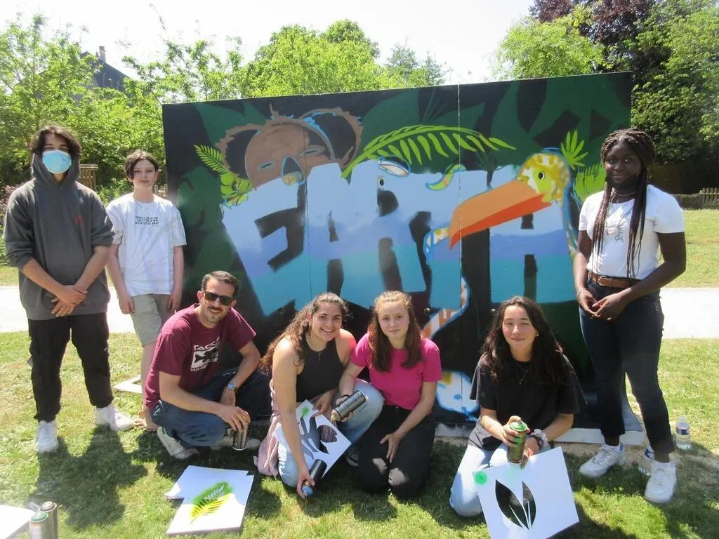 Les élèves ont préparé en commun leur fresque sur le thème de l’écologie durant les ateliers temps libre du midi. Pour Ana, l’une d’eux qui a déjà peint une quinzaine d’aquarelles en étant membre d’un club de peinture C’est une technique totalement différente, cela change des cours, c’est moins contraignant et cela laisse une grande place à l’imagination. Le fait qu’il s’agisse d’une réalisation faite en commun est également un plus inhabituel