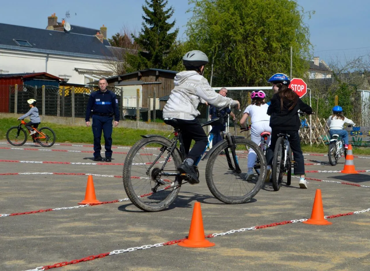 À Montval-sur-Loir, les agents de la police municipale sont actuellement mobilisés dans les écoles de la commune pour mener des actions de prévention autour des permis piétons et vélos. Au total, près de 140 élèves participent à cette initiative : une soixantaine d’enfants de CM2 pour le permis vélo et environ 80 élèves de CE2 pour le permis piéton. Répartis dans les cinq écoles de la ville, ils alternent entre apprentissages théoriques et mises en situation pratiques. Au programme : visionnage de vidéos pédagogiques, questionnaires sur les règles de sécurité, sensibilisation aux équipements obligatoires, mais aussi découverte du vocabulaire et des principaux panneaux de signalisation.