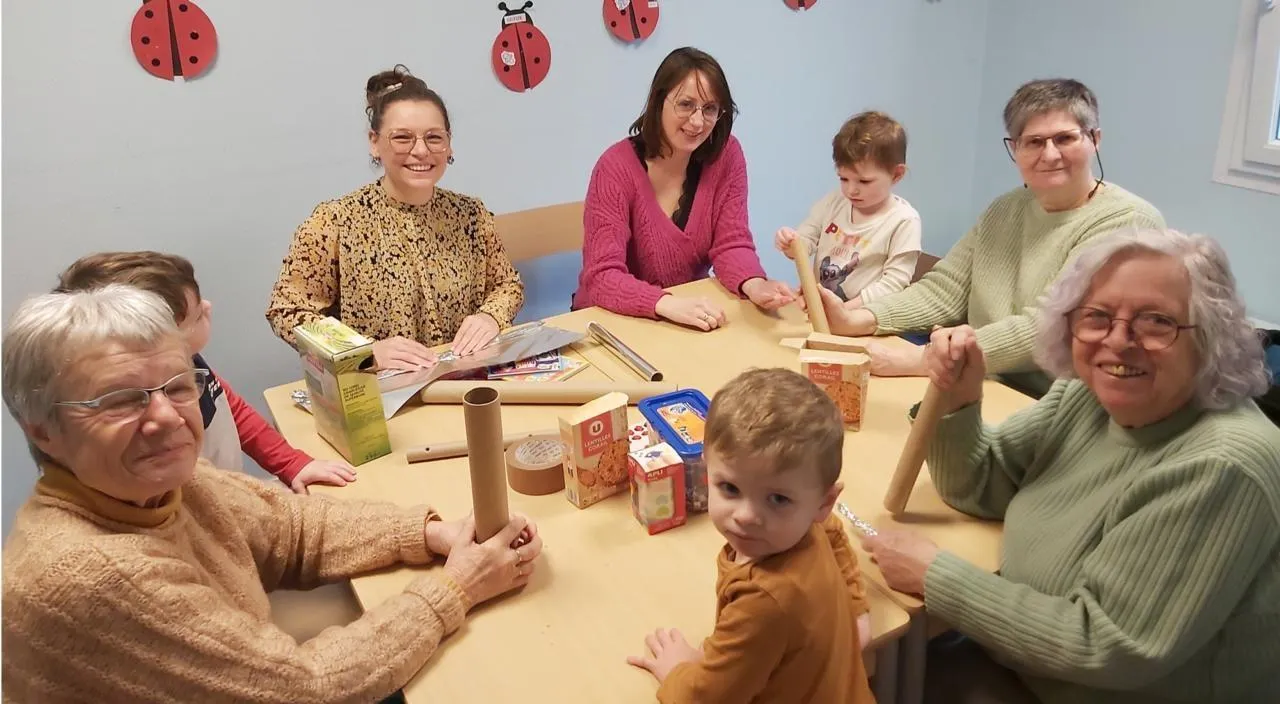 Une fois par mois, dans le cadre des ateliers seniors, trois bénévoles retraitées Patricia, Évelyne et Francine, consacrent une heure de leur temps libre à proposer des activités manuelles aux jeunes enfants. « Le public senior trouve toute sa place dans les différentes actions que nous développons. Ce secteur s’adresse aux plus de 60 ans. Nous avons créé ce lien entre la section seniors de la commission bien vieillir et la crèche de la maison de la petite enfance », explique Julie Fortin, animatrice seniors. « Chaque mois, nous préparons une activité, souvent créative. Quand le temps le permet, nous faisons aussi des sorties en forêt. Ce partenariat avec Julie Fortin est très positif. L’intérêt principal est que les enfants rencontrent et s’habituent à d’autres adultes que ceux de leur cercle familial », souligne Amandine Thimond, éducatrice de jeunes enfants et référente pédagogique de la crèche.
