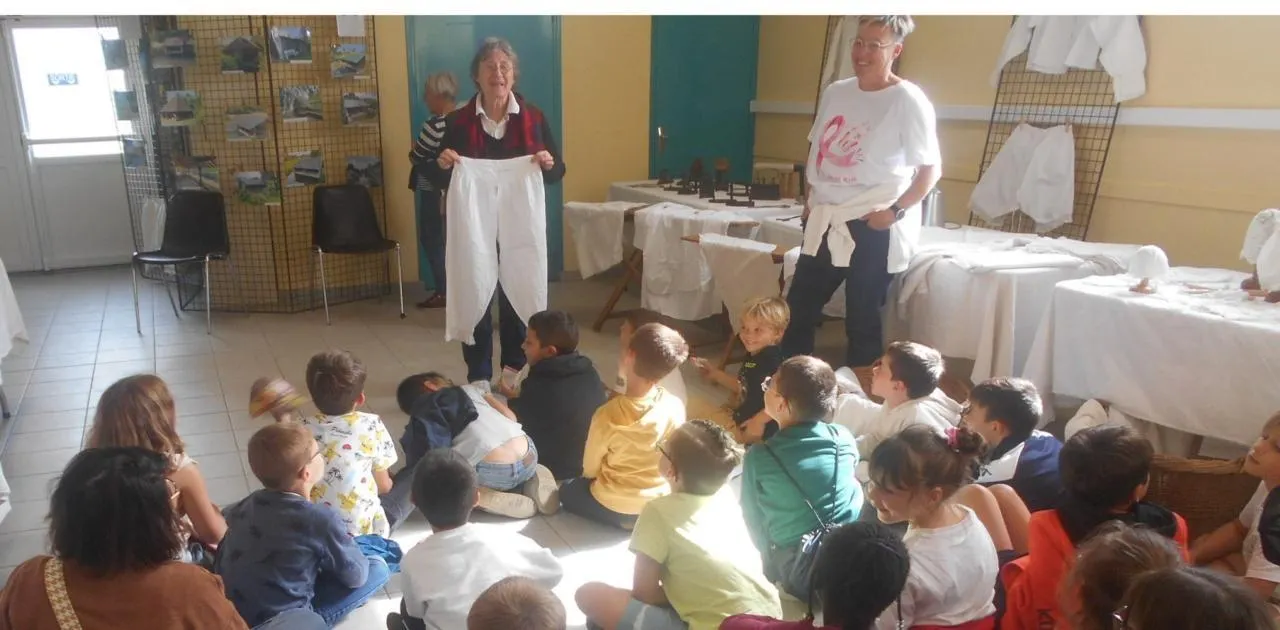 La présidente a montré aux enfants différents vêtements de l’époque, comme la culotte fendue. « Savez-vous à quoi cela servait ? » Pas de réponse. « Autrefois, les femmes qui portaient ces culottes pouvaient uriner debout. » Rires dans la salle.
