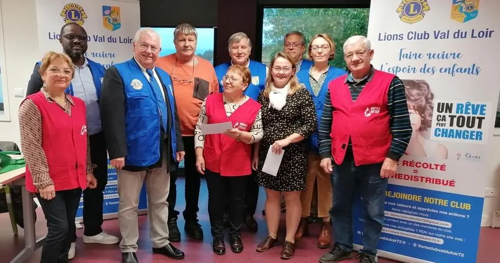 Les membres du Lions Club Val du Loir ont remis leurs dons aux deux associations concernées : Don du sang de Mulsanne et Rêves. © Ouest-France
