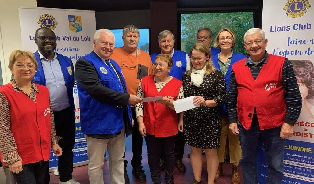 Le Lions club Val du Loir, présidé par Gilles Evenisse, a remis des chèques à deux associations, à Mulsanne.