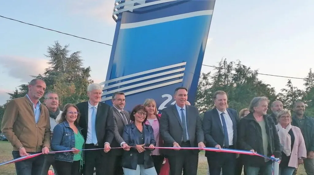 Élus locaux, départementaux, sénateur, partenaires et concepteurs du totem réunis pour son inauguration. © Le Maine Libre