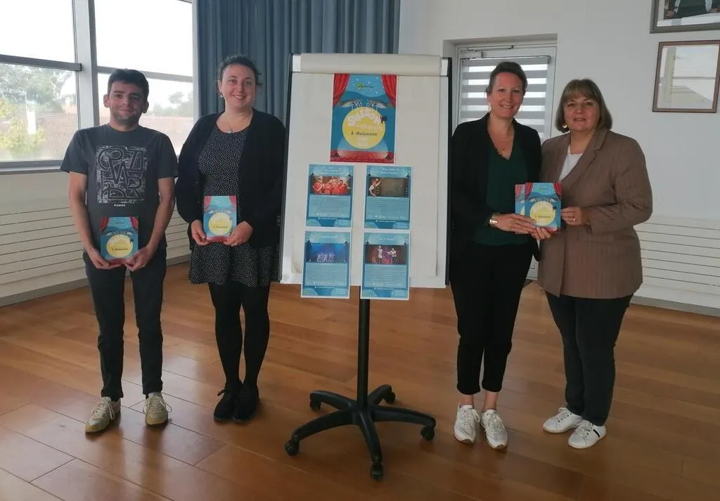 De gauche à droite, Julien Beucher et Chloé Pierre Dit Lemarquand, chargés de communication, Julia Houlbert, responsable du service communication et Christelle Gersant, adjointe au maire, ont présenté cette nouvelle saison culturelle. © Ouest-France