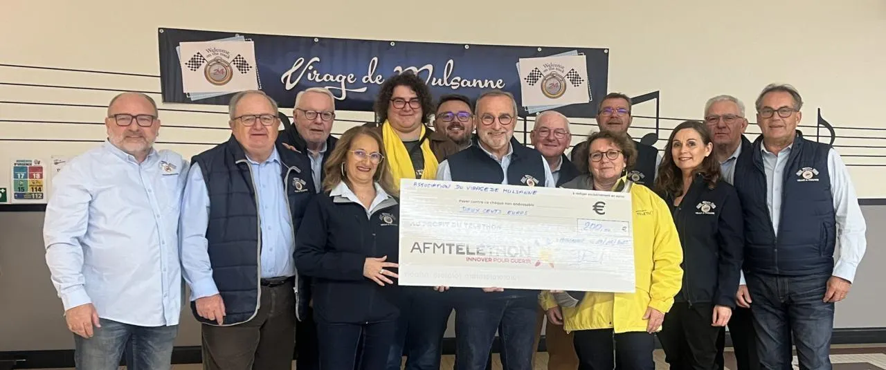L’association Virage de Mulsanne tenait son assemblée générale vendredi soir à la salle des fêtes Édith-Piaf. Les membres de l’association ont remis un chèque de 200 € à Pascale Rouzée, coordinatrice AFM Téléthon. Ce chèque est un don issu de notre trésorerie propre. Cela fait maintenant deux ans que nous ne faisons plus d’action spécifique pour le Téléthon, mais nous tenons quand même à verser une certaine somme chaque année à l’association