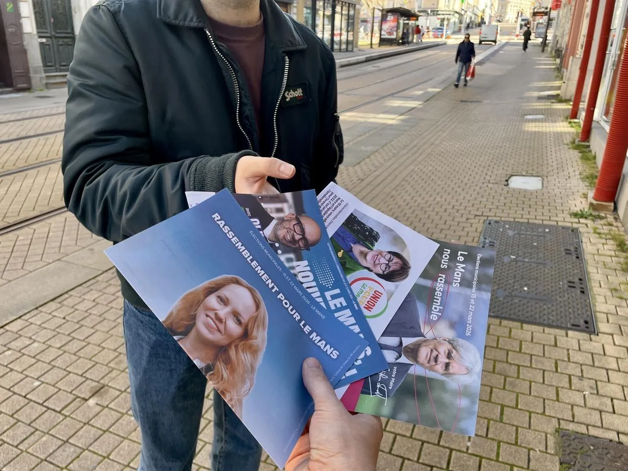 Sprint final pour les quatre listes encore en lice lors de ce second tour des élections municipales, au Mans (Sarthe), dimanche 22 mars 2026. Tractage mais surtout porte ...