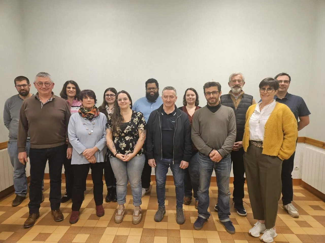 2e rang de gauche à droite : Julien Roux, 39 ans, technicien, Laura Levrard, 42 ans, artisan, Marjorie Guilmin, 27 ans, comptable, conseillère sortante, Barthélemy Mennock, 39 ans, professeur scientifique, Margaux Vrignaud, 31 ans, profession libérale, Jean-Baptiste Mollet, 70 ans, militaire, adjoint sortant, Sébastien Guittet, 49 ans, ingénieur cadre technique, conseiller sortant.