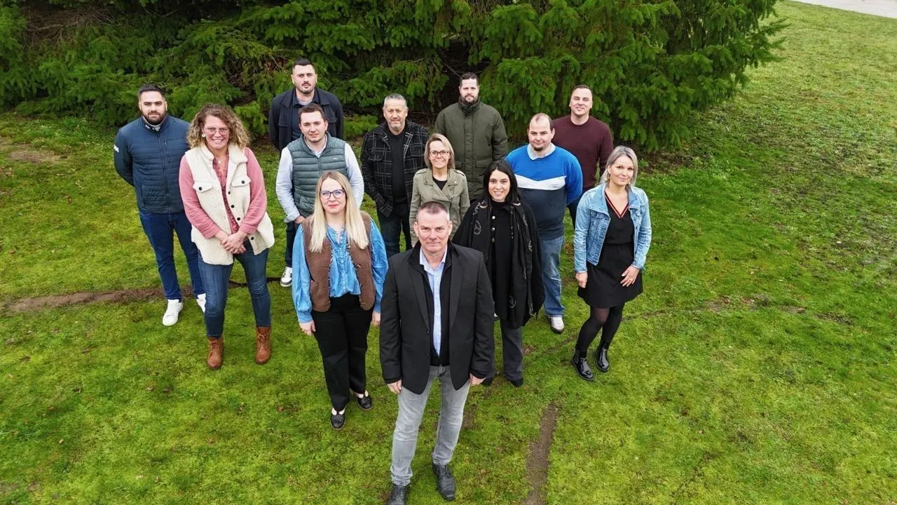 Samuel Radigue, au premier rang, tête de la liste « Construisons ensemble une commune dynamique où il fait bon vivre », à Saint-Ouen-en-Belin. Suivent Marie Brière, Aurélie Brier et Patricia Dheilly. Deuxième rang : Anaïs Bone, Baptiste Cromier, Charlène Fresnaye et Alban Pousse. Dernier rang : Guillaume Novais, Stéphane Pouchin, Alain Costagliola, Thomas Esnault et Olivier Ducreux. © Ouest-France