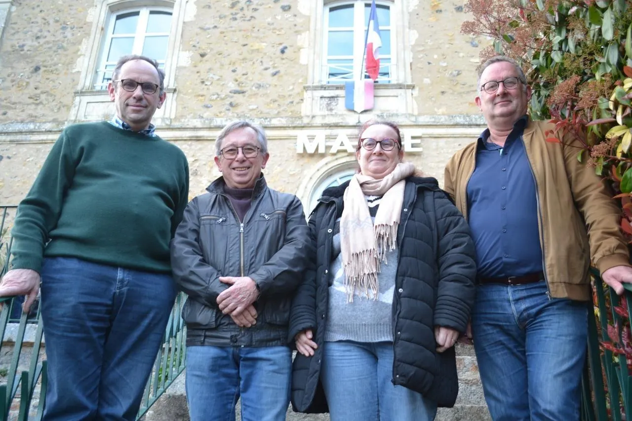 Antoine d’Amécourt (à gauche) en compagnie de ses trois adjoints (de gauche à droite : Michel Martinucci, Sandrine Heurtebise et Pascal Leroy). © Le Maine Libre