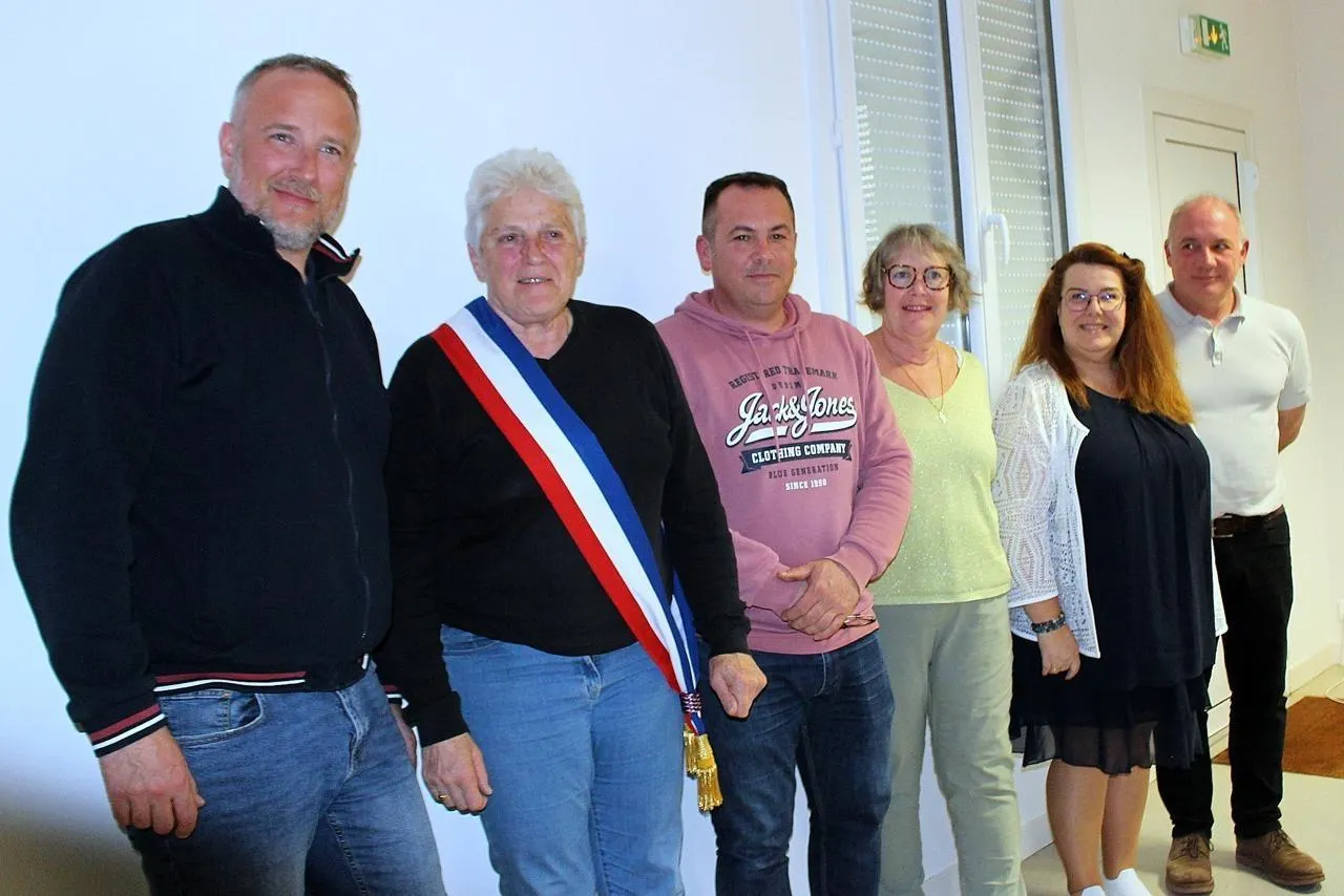 De gauche à droite, Julien Gautier, adjoint, Catherine Donné, maire, Nicolas Bernat, Corinne Léguillon, Audrey Couronne et Sylvain Cassini, tous les quatre, adjoints. © Le Maine Libre