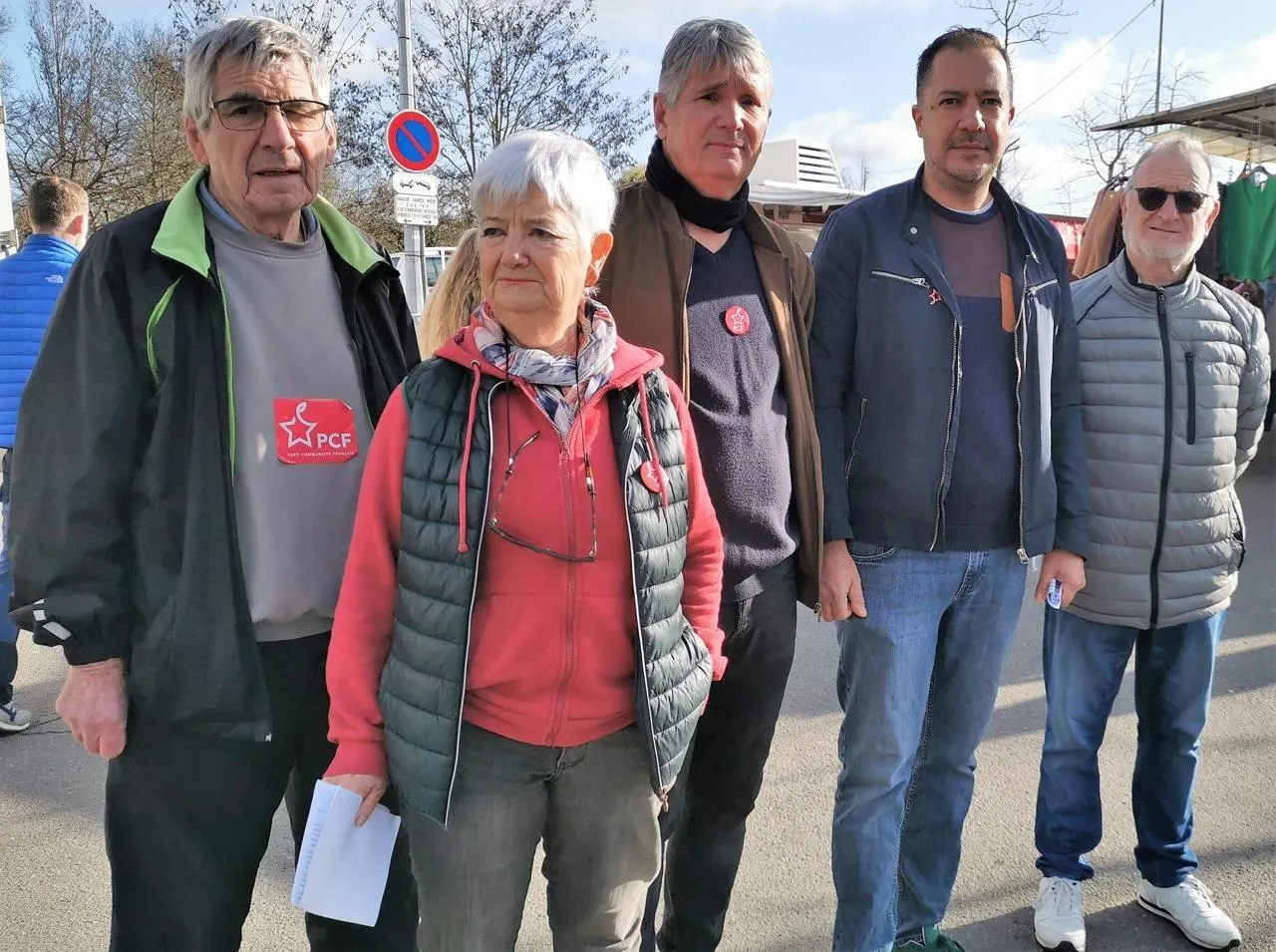La liste « Arnage ensemble, ouverte », avec à sa tête Chériffa Guillerme, du Parti communiste arnageois n’a pas abouti, regrettent Martine Goupil, Frédéric Macé, Christian Seery, Joël Legeay et Didier Jousse présents samedi 28 février 2026 au marché : Il nous a manqué peu de choses pour clore notre liste.