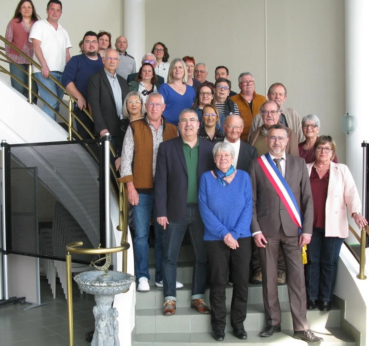 Jean-Yves Lecoq entouré des membres de son nouveau conseil municipal installé dimanche. © Le Maine libre