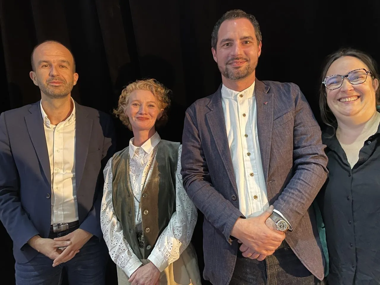 Les députés LFI Manuel Bompard (à gauche) et Élise Leboucher (à droite) sont venus entourer les candidats de la liste Le Mans ville humaine, Elen Debost et Maël Brillant. Le Maine Libre