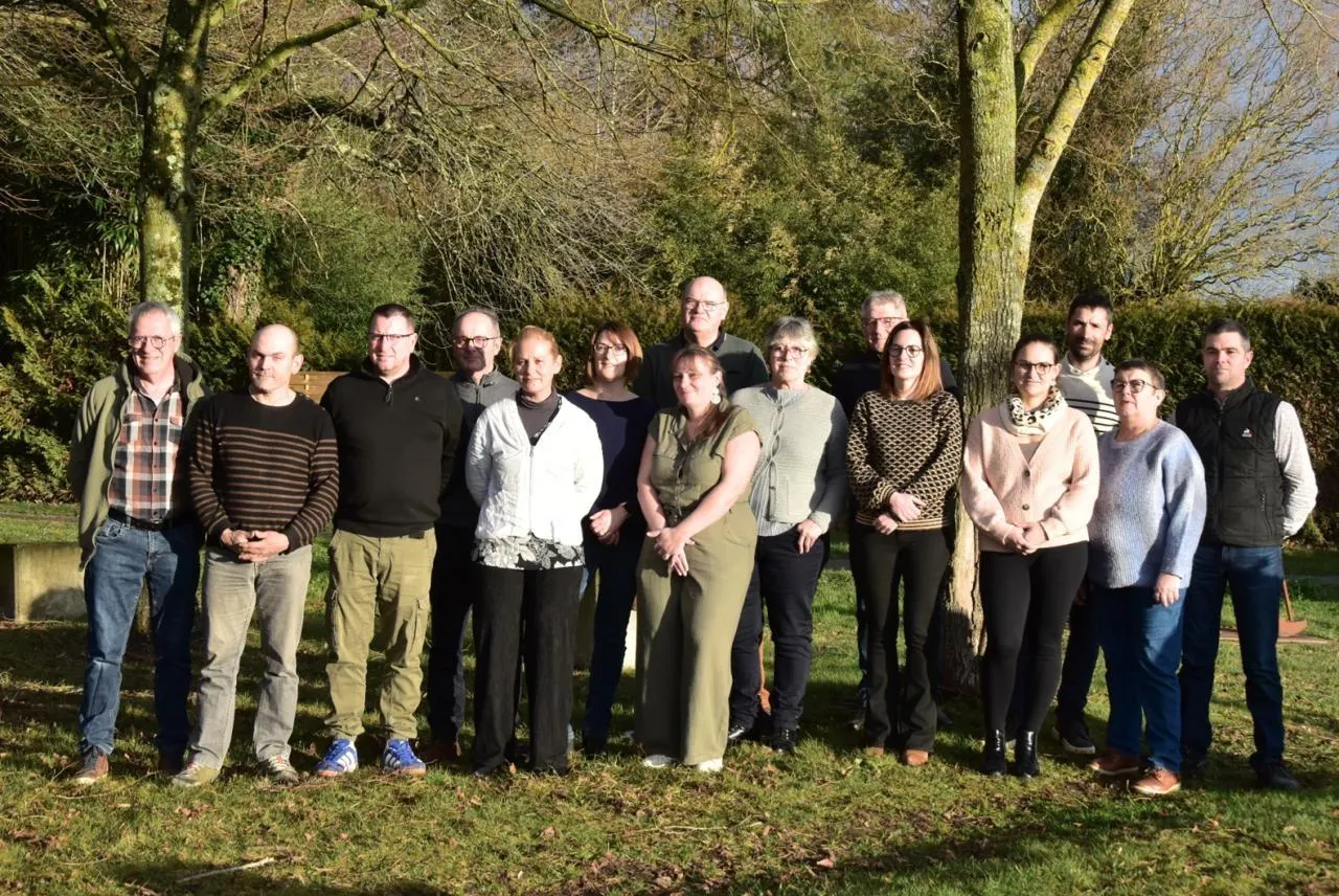 De gauche à droite sur la photo : Hubert Chevreuil, 72 ans (artisan retraité) ; Jérôme Chéron, 52 ans (artisan ; conseiller sortant) ; Emmanuel Guitton, 46 ans (agent de production, conseiller sortant) ; Bruno Courant, 68 ans (retraité ; adjoint sortant) ; Virginie Triffault, 43 ans (employée de commerce) ; Karine Richard, 45 ans (comptable ; conseillère sortante) ; Adeline Pasquier-Grison, 41 ans (ouvrière qualifiée) ; Eric Froger, 58 ans (agriculteur) ; Claudine Médard, 68 ans (retraitée) ; Jean-Claude Guilmet, 61 ans (retraité) ; Marie Fortin, 40 ans (assistante de direction) ; Victorine Levasseur, 32 ans (artisan) ; Olivier Alix, 43 ans (agriculteur) ; Pascale Chausson, 60 ans (sans activité professionnelle ; conseillère sortante) ; Benjamin Laude, 40 ans (électromécanicien).