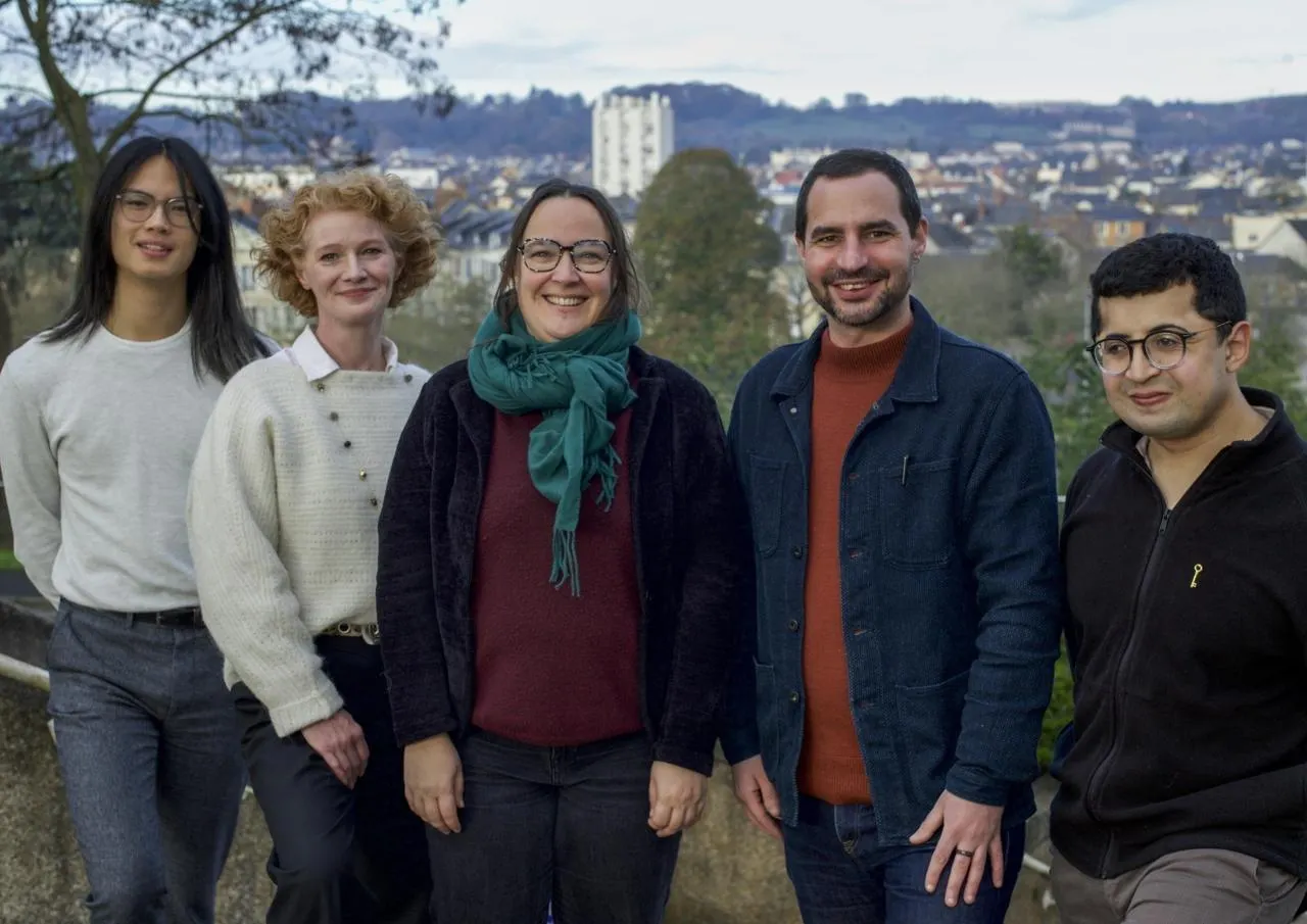 Élise Leboucher (au centre) préside le comité de soutien de la liste Le Mans ville humaine avec (de gauche à droite) Mathis Rommé, Elen Debost, Maël Brillant et Zyad Benthar. © Archives Le Maine Libre - Denis Lambert