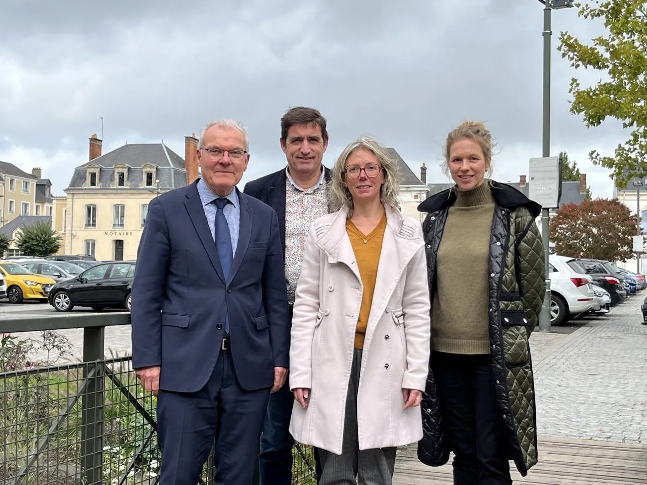 La Ferté-Bernard, 4 octobre 2025. Didier Reveau (à gauche), ici entouré (de gauche à droite) de Laurent Philibert, Christelle Pourceau et Caroline Lerat qui feront partie de sa liste pour les municipales 2026, a fait part de ses ambitions pour la ville. © Le Maine libre - Thomas NÉGRIER