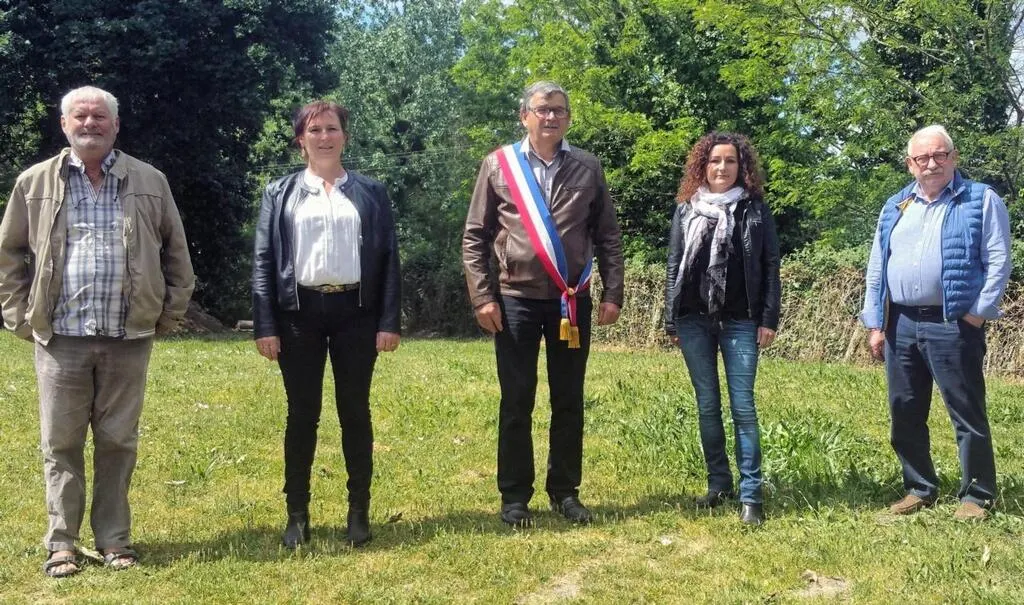Guy Fourmy entame officiellement son second mandat avec à sa gauche Séverine Prézelin et Yannick Livet et à sa droite Linda Debart et Joël Papin. © Ouest-France