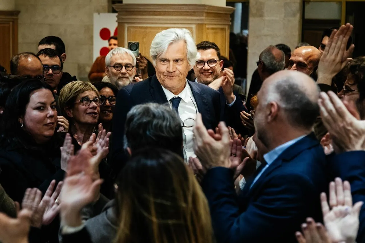 photo  stéphane le foll, large vainqueur de l’élection municipale de mars 2026 au mans (sarthe), ici félicité par ses colistiers et ses soutiens.  ©  ouest-france 4