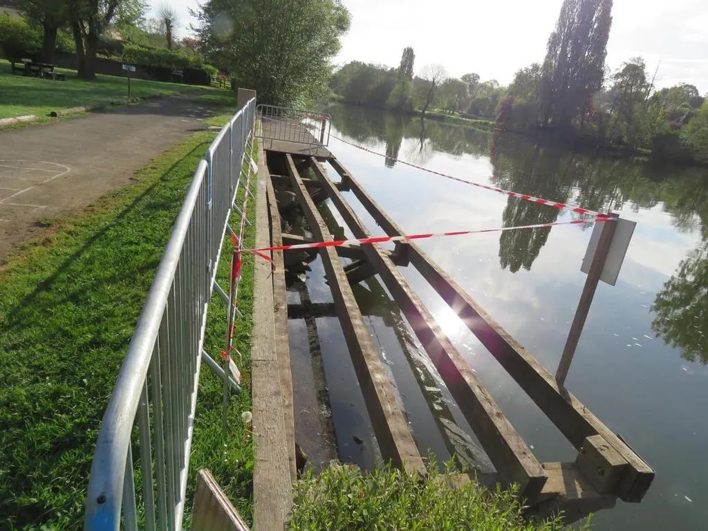 Les planches de la partie du ponton présentant les dégâts ont été retirées par deux agents communaux. © Ouest-France