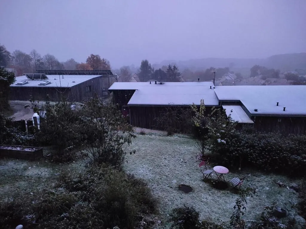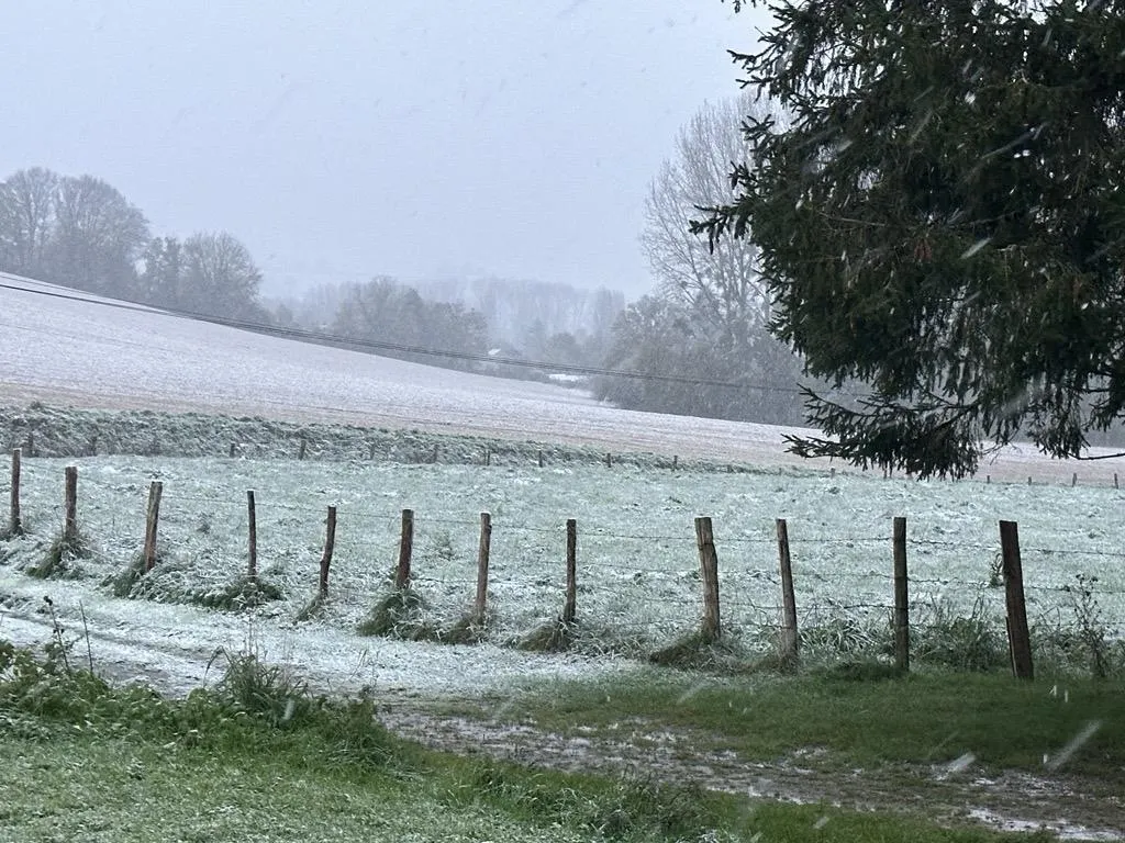 La neige à Saint-Vincent-du-Lorouër, ce matin. Ouest-France