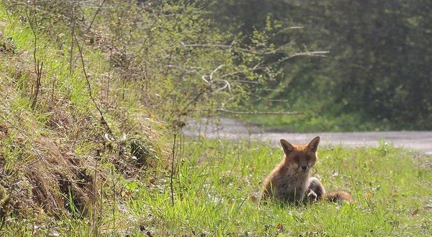 Jeune renard en bordure d’un chemin forestier. © ONF