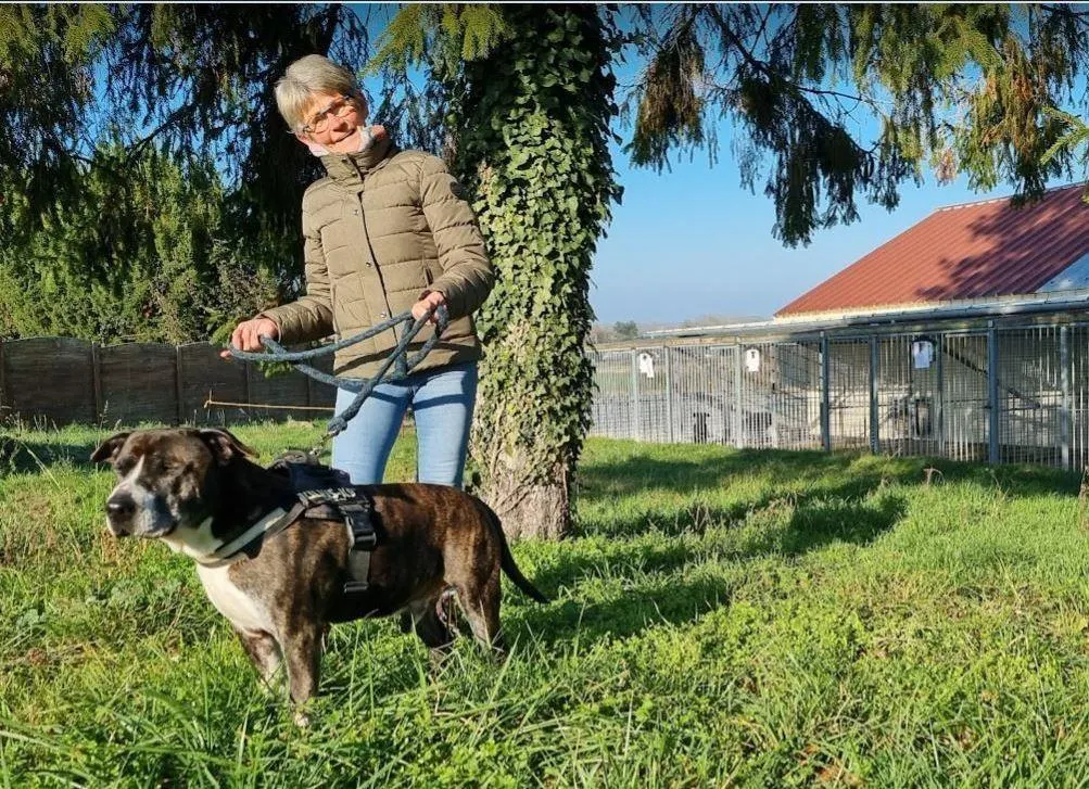 Chaque jour, Joëlle fait faire une promenade à Izzy, un staffordshire terrier américain, chien de catégorie 2 nécessitant un permis. © Ouest-France