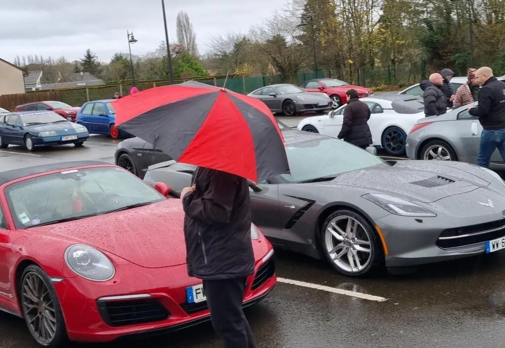 Dimanche, malgré la météo, l’exposition de voitures de course, organisée par CAP 72, a attiré plus de 80 personnes. Ces dernières ont fait la navette entre la salle polyvalente, où la municipalité offrait café chaud et viennoiseries, et le parking, où s’alignaient les voitures aux couleurs vives. © Ouest-France