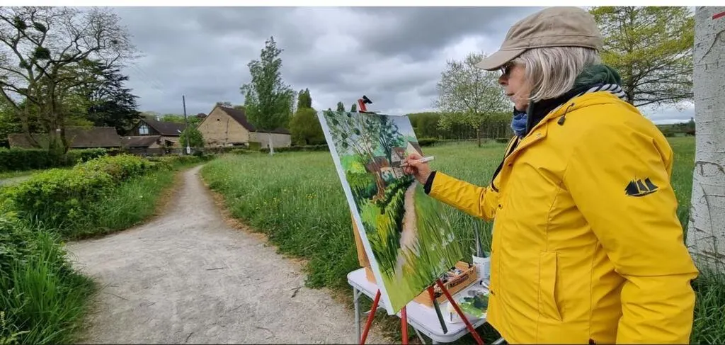 photo  cathy est venue du sud de la vienne pour découvrir et peindre le bocage sarthois.  ©  ouest-france 2