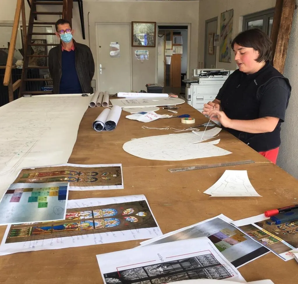 Les personnes présentes ont pu visiter les ateliers de Vitrail France avec les explications d’expertises des vitraillistes, aussi appelés maître verrier, sur leur savoir-faire ancestral et leur technique complexe et artistique concernant la restauration et la conservation des vitraux, par exemple : l’église Saint-Nicolas de Coulaines, pour laquelle une souscription a été lancée en décembre 2019 par la Fondation du patrimoine.