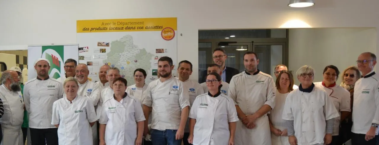 Lundi dernier, c’était la fête au collège Marcel-Pagnol de Noyen-sur-Sarthe avec un menu exceptionnel, 100 % sarthois proposé par le conseil départemental et concocté par les chefs des 19 Bonnes tables sarthoises. Ils étaient dix présents, dont le président Gaëtan Clédic et Jean-Jacques Jacquot, de l’Ardoise de Malicorne, autour d’Alexis, le chef du restautant scolaire depuis quatre ans. Au menu, buffet d’assortiment de choux crus et leurs vinaigrettes, crudités de saison, filet mignon en croûte, sauce au cidre et champignons, galettes de céréales aux légumes, risotto de lentilles vertes au lard, poêlée de butternut, assortiment de fromages locaux, petit pavé au sarrasin et ses coulis de saison, barre pomme caramel chocolat.