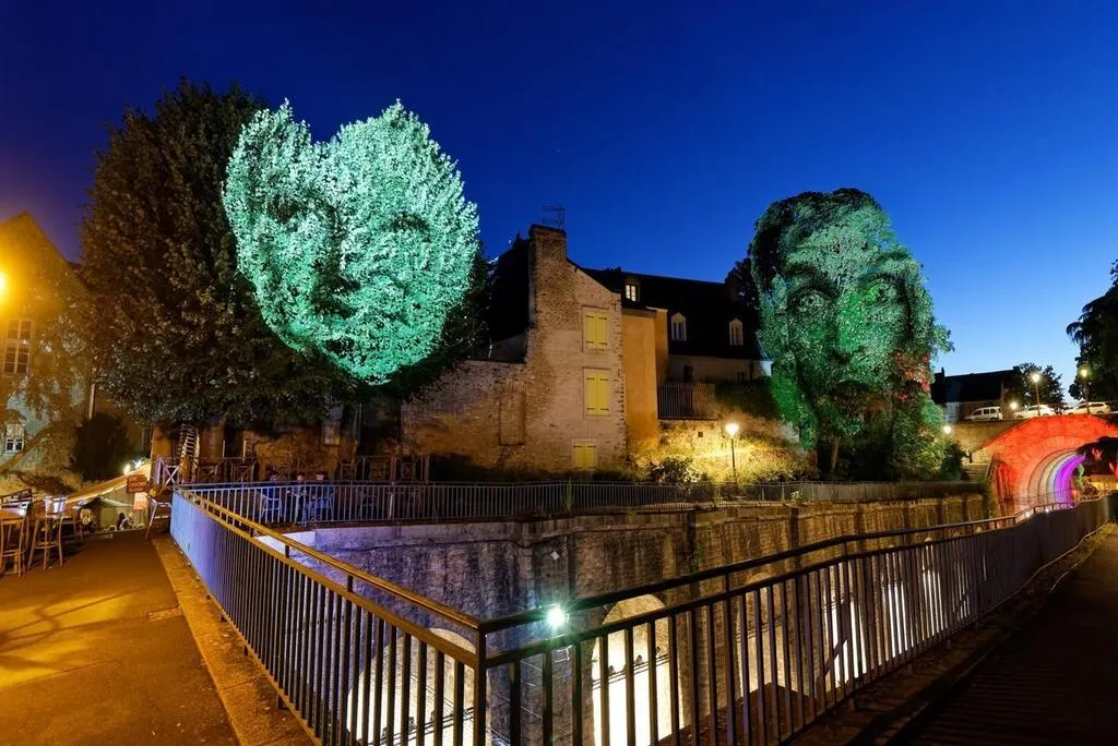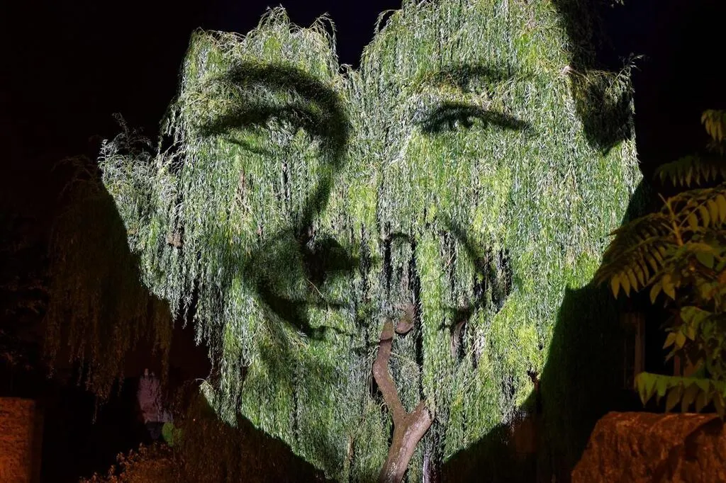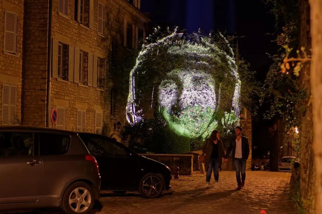 C’est le but ! Je veux que les passants soient surpris en passant dans l’axe du projecteur. De près ou de loin, ils voient un arbre éclairé, puis, en se plaçant au bon endroit, un visage apparaît. La méthode s’appelle l’anamorphose : plus l’arbre a du volume, plus il faut se placer dans un angle précis pour voir apparaître le portrait.