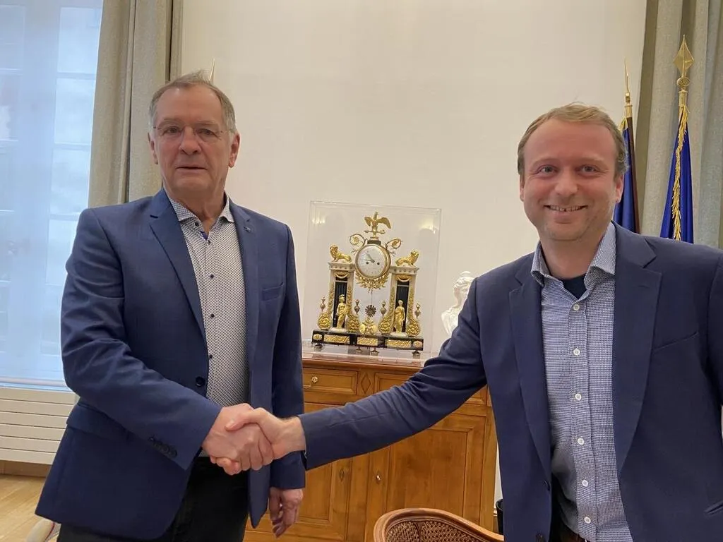 Jacques Gouffé (vice-président de Le Mans Métropole, à gauche) et Sébastien Gacougnolle (président de Tryon). © Le Maine Libre