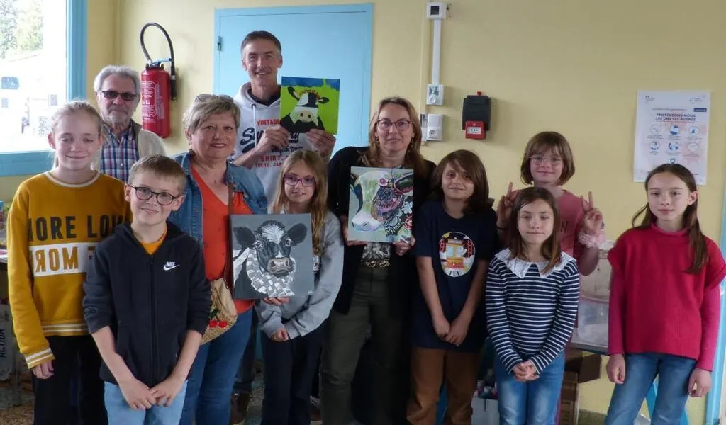 C’est lors du comice des 9 et 10 septembre derniers à Oizé où Baz’Arts Oizéen, l’école de peinture dirigée par Isabelle Jacob tenait un stand à proximité d’Alex & Cows, l’éleveur de vaches de race Montbéliarde que celui-ci proposa à l’association de réaliser trois tableaux représentant des vaches afin de les exposer dans son point de vente qui sera inauguré à la fin de l’été.