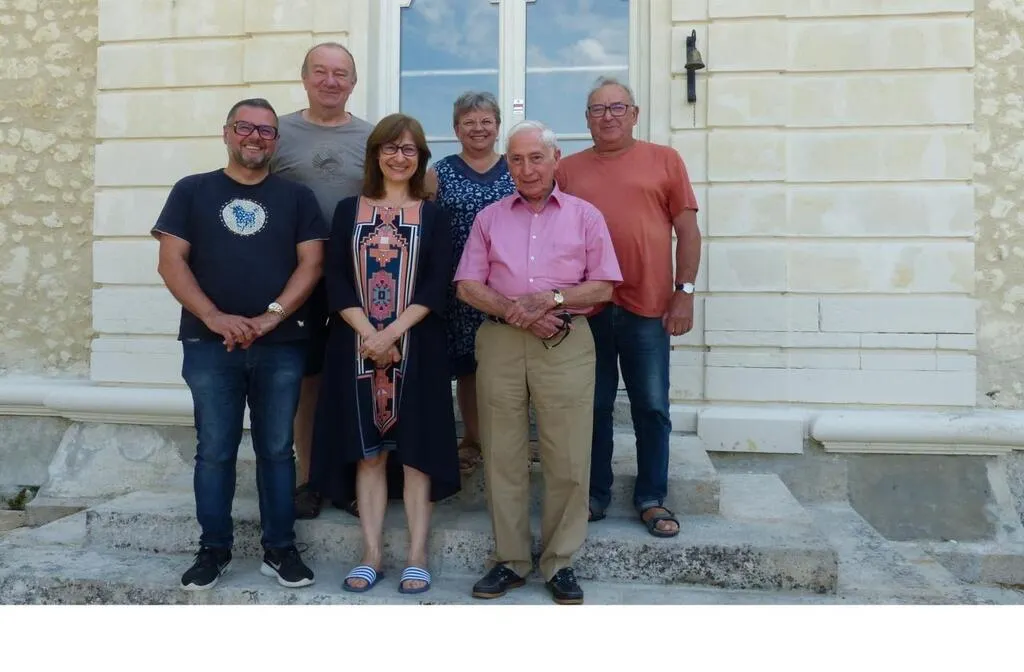 Cynthia et Fady Fadel, (à gauche), devant leur château de Montaupin, entourés de bénévoles de l’association Passeur de mémoire de Cérans-Foulletourte, avec le président, Christian Royer, Jean Chesnais, 92 ans, ayant séjourné au château lors de la Seconde Guerre mondiale, venu de la région parisienne afin de préparer ce week-end des Journées du patrimoine. © Ouest-France