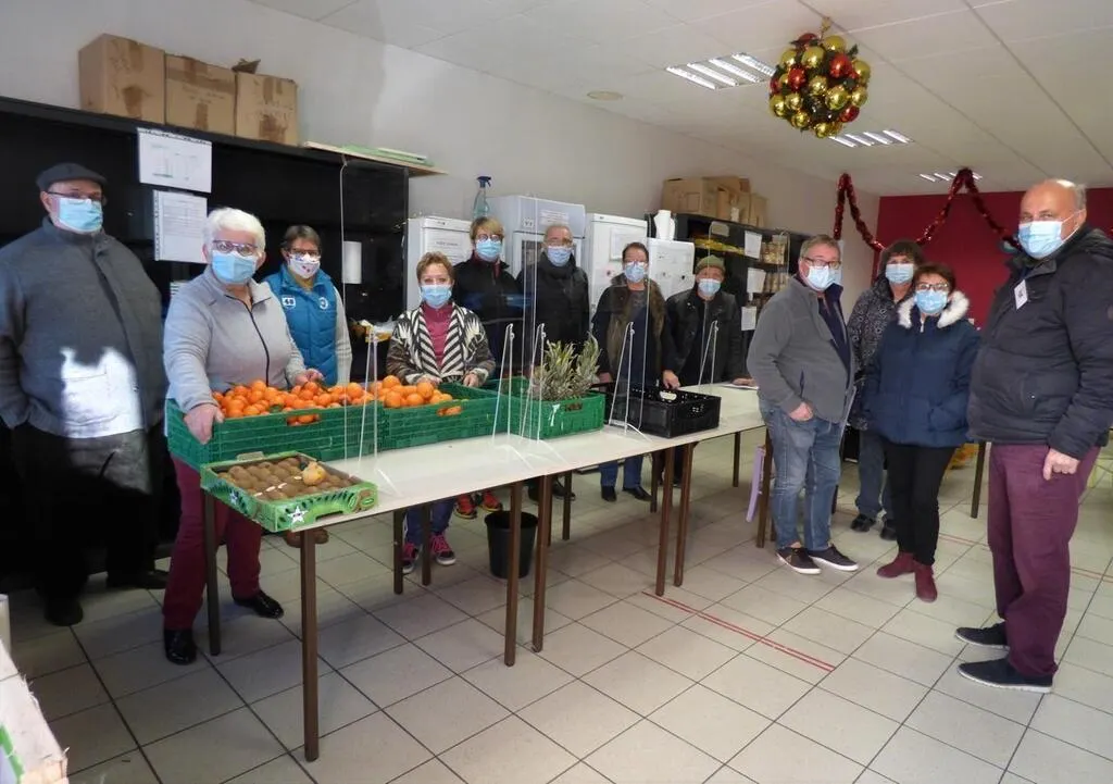 Annick Freulon, responsable, et Jean-Luc Bonnet, co-responsable, expliquent : On distribue des repas 12 mois sur 12. Entre avril et septembre on a fonctionné en drive mais pour l’hiver on revient à la normale en donnant des créneaux horaires aux bénéficiaires. Aujourd’hui on a 129 familles inscrites pour un total de 330 personnes de plus d’un an. On distribue 2 100 repas par semaine. Les bénévoles divisés en deux équipes reçoivent 65 familles le mardi et autant le vendredi après-midi. Chaque jour d’ouverture on a au moins une nouvelle inscription avec en majorité des familles monoparentales mais aussi des gens qui ont vu leurs revenus baisser faute de pouvoir faire des petits boulots ou des missions d’intérim. Pour d’autres, leurs CDD n’ont pas été reconduits et on voit des familles qui n’étaient plus inscrites revenir. En contrepartie, des personnes en majorité des retraités sont venues nous aider pendant le premier confinement
