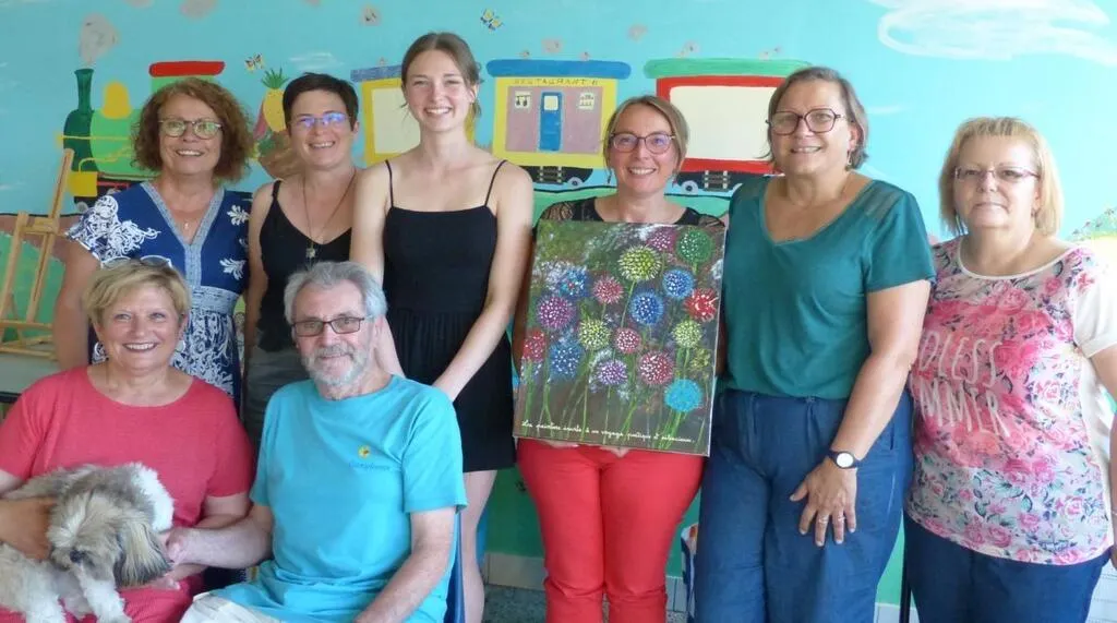 Isabelle Jacob, la présidente, tenant le tableau qui sera le nouveau logo de l’association. À sa droite, Camille Provost, 16 ans, nouvelle secrétaire. © Ouest-France