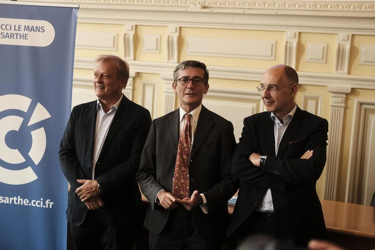 Hervé Tremblaye, président de la CCI de la Sarthe, Gilles Bonal, directeur de la Banque de France du Mans, et Philippe Brunet directeur général de la CCI de la Sarthe. © Ouest-France